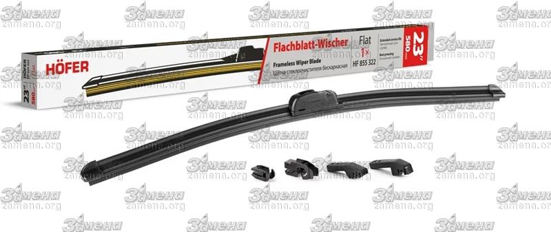 Щетка стеклоочистителя бескаркасная 58см/23" HOFER 4 адаптера
